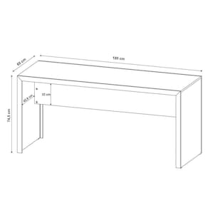 Características da Mesa para Escritório Escrivaninha 180 cm: - Estrutura em MDP; - Acabamento em BP; - Costas na cor do móvel; - Suporta até 15kg no tampo; - Não acompanha objetos decorativos; - Para uma limpeza mais efetiva, utilizar apenas pano macio umedecido e sabão neutro. Não utilizar produtos abrasivos; - Montagem por conta do comprador;