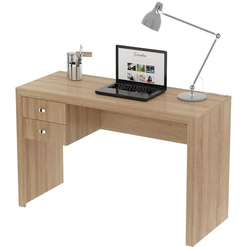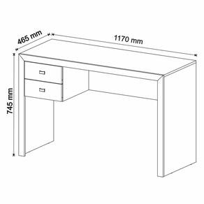 Características da Mesa para Escritório Escrivaninha 2 Gavetas: - Estrutura em MDP; - Acabamento em BP; - 2 gavetas; - Puxadores em plástico; - Suporta até 20kg no tampo e 3kg cada gaveta; - Não acompanha objetos decorativos; - Para uma limpeza mais efetiva, utilizar apenas pano macio umedecido e sabão neutro. Não utilizar produtos abrasivos; - Montagem por conta do comprador;