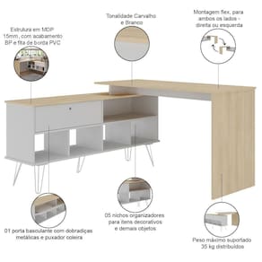 ColorSimple: Carvalho | ProductLength: 54 cm | OriginState: PR | ProductHeight: 75 cm | Largura: 75 cm | MaterialFamily: MDP | ProductWeight: 33 kg | ColorSupplier: Carvalho Branco | OriginCountry: | SizeDescription: Altura: 75 cm x Largura: 136 cm x Profundidade: 54 cm | SupplierSimpleName: Mesa Para Escritório Escrivaninha Em L Home Office Kalil A02 Carvalho Branco - Lyam Decor | ProductContents: 01 Mesa Escrivaninha, manual de montagem | Profundidade: 54 cm | Cor: Carvalho Branco | ProductWarranty: 90 dias após o do produto | ProductWidth: 136 cm | Model: Kalil | Altura: 136 cm | Modelo: Kalil | Color: Carvalho | ColorFamily: Carvalho | ProductInstructions: Produto para uso em ambiente interno, nao devendo ficar exposto ao sol, calor e umidade excessivos.