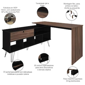 Com montagem ível (lado esquerdo ou direito), essa escrivaninha em L se adapta ao seu espaço e hábitos, enquanto os encantadores pés de metal trazem um toque industrial cheio de personalidade. Além disso, os nichos organizadores oferecem espaço estratégico para livros, decorações e itens essenciais, mantendo tudo à mão sem perder o estilo. E o melhor? Com traseira totalmente acabada, você posiciona a mesa onde quiser - como divisória de ambientes, encostada na parede ou até no centro do espaço, criando um cantinho produtivo que reflete sua essência. Porque trabalhar bem começa em um ambiente que é puramente seu.