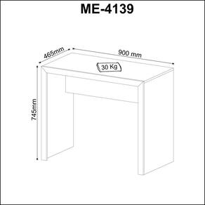 Produto: Mesa para Escritório ME4139 Cor: Branco Acabamento: BP Material: MDP Altura (cm): 74,5 Largura (cm): 90 Profundidade (cm): 46,5 Peso (kg): 13,7 Peso Suportado: 20kg no tampo. Prateleiras: 0 Gavetas: 0 Portas: 0 Puxador: 0 - Material: 0 Rodízio: 0 Garantia: A Tecnomobili tem o compromisso permanente com a qualidade de seus produtos. Nosso período de garantia é 03 (três) meses contra defeitos de fabricação. Limpeza e Conservação: Para uma limpeza mais efetiva, utilizar apenas pano macio umedecido e sabão neutro. Não utilizar produtos abrasivos. Necessita Montagem: Sim. Aconselhamos que a montagem seja feita por um . O produto será entregue desmontado. Não disponibilizamos montagem. Após montado não expor o móvel a fonte de calor ou umidade. Imagem meramente ilustrativa. A decoração do ambiente não acompanha o produto. produto lacrado acompanhado de procedência garantida. Referência: ME4139.0001 Marca: Não Informado