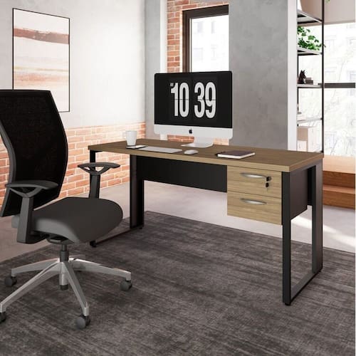 1x Mesa Escritório Diretor 150x60cm Tampo com 30mm Pé Quadro AMADEIRADO CLARO/PRETO Largura: 150 cm Altura: 75 cm Peso: 23,93 kg Profundidade: 60 cm Necessita Montagem: Sim