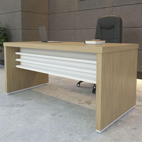 O(a) Mesa para Escritório Tamburato Carvalho/Branco - Artany Móveis é produzido em MDP e Tamburato na escala de brilho Fosco, e possui um grau de dificuldade de montagem: Médio.
