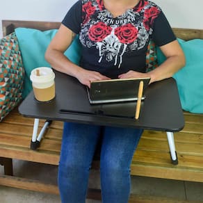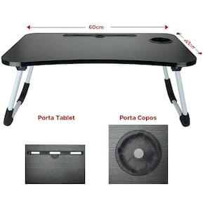 Mesa para Notebook Portátil Dobrável Cama Porta Tablet Cor: Marrom PRINCIPAIS DESTAQUES - Suporte para Tablet- Porta Copos- Porta Caneta- Super Resistente- Dobrável- Pés Emborrachados
