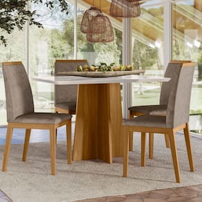 Mesa de Jantar Anitta ideal para você deixar seu ambiente mais funcional e sofisticado. Com um belo design moderno, fabricada com materiais de excelente qualidade e procedência, garantindo durabilidade e resistência, acomoda confortavelmente até 4 pessoas. Seu tampo é em MDF com aplicação de vidro facilitando a limpeza. Mude com estilo, faça a escolha perfeita venha adquirir já a sua! Acabamento: Pintura UV Acabamento da Base: Pintura UV Ambiente Principal: Sala de Jantar Atóxico: Não codigo_ean: 7900288117977 Complexidade da Montagem: Média: pode ser montado por mais de uma pessoa e/ou necessite de maior conhecimento para montagem Cor: Ypê/Off White Cor do Produto: Ype/Off White Design da Base: 4 Pés Dobrável: Não Escala de Brilho: Semi-Brilho Espessura do Tampo: 28 mm Extensível: Não Informações Complementares: Cadeiras não acompanha a mesa Itens Inclusos: 1 Mesa, Manual de Montagem e Kit Ferragens Manual de Montagem e Instalação: https://product-hub-prd.madeiramadeira.com.br/992501/documents/af0e7b3a-855c-4304-aec0-d55a8210264f2823766291317442604289017.pdf Marca: New Ceval Móveis Material da Base: MDF Material do Tampo: MDF Material Principal: MDF Medida da Mesa (A x L x P): 80x120x80 Medida do Tampo (L x C x E): 120x80x28 Necessita Montagem: Sim Origem do Produto: Nacional Peso: 39,6 kg Possui Rodízio: Não Possui Suporte Giratório: Não Possui Vidro: Sim Recomendações de Uso, Manutenção e Limpeza: Para maior durabilidade do produto, recomendamos mantê-lo longe de umidade e poeira e da exposição direta a luz solar. Limpar com flanela limpa e seca. Não molhar o móvel e não expor em lugar úmido ou próximo de fontes de calor, não usar produtos abrasivos.A limpeza deve ser feita usando um pano macio e semi-úmido, sem o uso de produtos quimicos como Alcool ou Lustra Móveis.Ao precisar movimentar o móvel, evite arrasta-lo ou levanta-lo sozinho, peça ajuda a outra pessoa para realizar a tarefa. Sistema de Montagem: Parafusos, Cavilhas e Minifix Suporta Até (kg): 20 kg