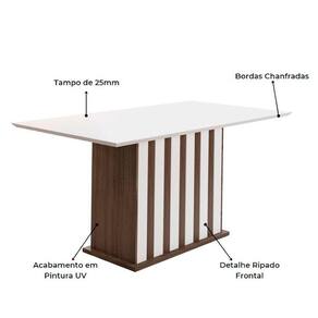 Com design contemporâneo, a Mesa de Jantar Amália é perfeita para completar sua cozinha. Possui base retangular que traz mais robustez com detalhes em chapa de madeira MDP ripada na parte frontal, tampo 160x90cm em MDP 25mm ideal para 6 lugares, com bordas chanfradas que valorizam o produto deixando o modelo ainda mais requintado. As sapatas plásticas garantem melhor durabilidade e estabilidade. Acabamento em pintura UV, disponível em padrões amadeirados com perfeita combinação com os mais variados ambientes. Produto ecologicamente correto com embalagens preparadas afim de evitar avarias e permitir que o produto chegue em perfeito estado em sua casa. Cadeiras não acompanham o produto. Qualidade que só a Poliman oferece em seus produtos.