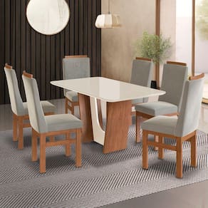 ( Mesa avulsa, não acompanha cadeiras. ) Mesas são indispensáveis para o funcionamento da casa e é no cômodo de confraternização que elas ganham protagonismo. Composto por peças de muito charme, a mesa Ref:136 vidro off white orna o uso desse móvel importante com 4 e 6 cadeiras para garantir uma usabilidade plena para o seu dia a dia. Ideal para cozinhas e salas de jantar, o kit oferece amplo espaço para que você possa dispor pratos, copos, talheres e até uma travessa com o quitute da vez, enquanto acomoda os convidados com aconchego e receptividade. Ah, para completar, é só combiná-la com o restante da mobília de sua preferência e criar o ambiente intimista perfeito para a sua rotina ou reuniões entre amigos. Acabamento: Pintura UV Acabamento da Base: Pintura UV Acabamento do Tampo: Pintura UV Ambiente Principal: Sala de Jantar Atóxico: Não codigo_ean: 7909903509739 Complexidade da Montagem: Baixa: pode ser montado por uma pessoa sozinha Cor: Canela/Off White Cor do Produto: Canela/Off White Design da Base: Trapézio Dobrável: Não Escala de Brilho: Semi-Brilho Espessura do Tampo: 30 mm Extensível: Não Informações Complementares: Mesa avulsa, não acompanha cadeiras. Itens Inclusos: 01 Tampo, 01 Base, 01 Kit Ferragens, 01 Manual Linha ou Coleção: 2024 Manual de Especificação Técnica: https://product-hub-prd.madeiramadeira.com.br/880741/documents/bfc97ad4-09cc-4f93-83a5-c32f749f3f141700338base136.pdf Manual de Montagem e Instalação: https://product-hub-prd.madeiramadeira.com.br/880741/documents/b42dd030-3e8f-40ae-a4aa-46b662c073881700337base136.pdf Material da Base: MDP Material do Tampo: MDF/MDP Material Principal: MDF/MDP Medida da Base (A x L x P): 75X67X41 CM Medida da Mesa (A x L x P): 160x90x80 Medida do Tampo (L x C x E): 160X90X3 Necessita Montagem: Sim Origem do Produto: Nacional Peso: 50 kg Possui Portas: Não Possui prateleira: Não Possui Rodízio: Não Possui Suporte Giratório: Não Possui Vidro: Sim Recomendações de Uso, Manutenção e Limpeza: Limpeza com pano macio e levemente umedecido Sistema de Montagem: Parafusos, Cantoneiras, Tapa Furo e Cola Suporta Até (kg): 80 kg
