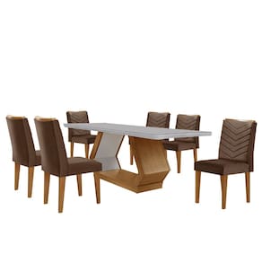 Mesa para Sala de Jantar Alvorada 180cm MDF com Vidro Canto Copo e 6 Cadeiras Liz