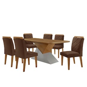 Mesa para Sala de Jantar Aster 180cm MDF Tampo Laminado Canto Copo e 6 Cadeiras Melissa - Marrom Chocolate