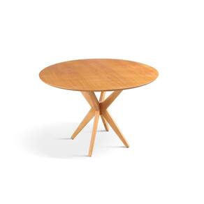 A Mesa Serena combina elegância e funcionalidade em um design atemporal. Seu tampo redondo em madeira natural traz aconchego ao ambiente, enquanto a base escultural, composta por quatro pés cruzados, adiciona um toque de modernidade e leveza visual.