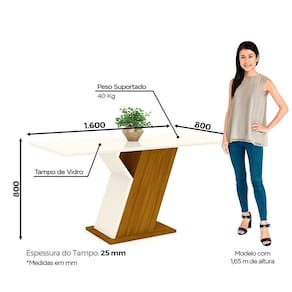 Nada mais gostoso do que um bom papo, uma boa comida, com ótimas companhias e uma decoração maravilhosa envolvendo tudo isso. Você pode aproveitar tudo isso através do design funcional e moderno da mesa de Jantar Maisa que é composta por tampo em MDF inteiro de 25cm acabamento em pintura UV com pintura nas duas faces, garantindo maior qualidade e durabilidade para o móvel. Elaborada com 80cm de altura, 160cm de largura e 80cm de profundidade a mesa Maisa é de fácil montagem e ainda garante um novo visual para sua casa. Acabamento: Pintura UV Acabamento da Base: Pintura UV Acabamento do Tampo: Pintura UV Ambiente Principal: Sala de Jantar codigo_ean: 7900288210388 Complexidade da Montagem: Média: pode ser montado por mais de uma pessoa e/ou necessite de maior conhecimento para montagem Cor: Marrom/Off White Cor do Produto: Marrom/Off White Dobrável: Não Escala de Brilho: Fosco Espessura do Tampo: 25 mm Extensível: Não Itens Inclusos: 1 Mesa, Kit Ferragem e Manual de Montagem Linha ou Coleção: Maisa Manual de Montagem e Instalação: https://product-hub-prd.madeiramadeira.com.br/495360837/documents/8d4ce1f8-58e7-4b4d-9efd-9f9835b94d613119386326617544200443499.pdf Marca: Espresso Móveis Material da Base: MDP Material do Tampo: MDF Material Principal: MDF/MDP Medida da Mesa (A x L x P): 80 x 160 x 80cm Medida do Tampo (L x C x E): 80 x 160 x 2,5 cm Necessita Montagem: Sim Origem do Produto: Nacional Peso: 63 kg Possui Portas: Não Possui prateleira: Não Possui Rodízio: Não Possui Suporte Giratório: Não Possui Vidro: Sim Recomendações de Uso, Manutenção e Limpeza: Para limpeza de seu móvel, use uma flanela limpa e seca. Não utilize produtos químicos que possam danificar o produto. Sistema de Montagem: Parafusos e Cavilhas Suporta Até (kg): 40 kg