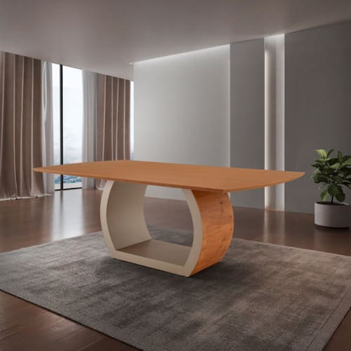 A mesa de jantar Ellis é uma obra-prima de design moderno, uma peça que captura instantaneamente a atenção com sua presença imponente. Feita com madeira de alta qualidade, ela é mais do que um simples móvel; é uma expressão de estilo e sofisticação. Seu design arrojado e contemporâneo é evidente desde o primeiro olhar, destacando-se por uma base com detalhes curvados que conferem um charme único e uma elegância inigualável a qualquer espaço. O que torna a mesa Ellis verdadeiramente especial são seus detalhes meticulosamente trabalhados. Cada curva da base é cuidadosamente elaborada para proporcionar uma sensação de fluidez e movimento, criando uma peça que é ao mesmo tempo visualmente deslumbrante e funcional. Seja em uma sala de jantar moderna ou em um ambiente mais clássico, a mesa Ellis se destaca como o ponto focal perfeito, adicionando um toque de estilo e personalidade ao ambiente. Sua qualidade excepcional garante durabilidade e resistência, enquanto seu design inovador cria uma atmosfera acolhedora e convidativa para momentos de convívio e celebração.