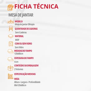 Dimensões da Mesa: Altura: 80 cm Largura: 120 cm Profundidade: 80 cm