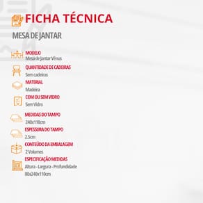 Dimensões da Mesa: Altura: 80 cm Largura: 240 cm Profundidade: 110 cm