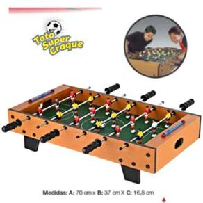 Pebolim totó super craque master O totó super craque de dm toys garante toda a diversão do pebolim em uma versão compacta para você levar para onde quiser basta colocar em uma superfície plana e se divertirA mesa possui 6 fileiras de jogadores, totalizando 18 bonecos, isso inclui um goleiro de cada lado que tem camisetas de cores diferentes. Acompanha duas bolas, e placar manual deslizante para manter a pontuação.É construída com um belo acabamento de verniz em madeira mdf de alta resistência.Um produto para todas as idades, ideal para presentear ou curtir com os amigosEspecificações:- recomendado a partir de 6 anos- dimensões do produto cla : 70 x 37 x 16 cm- inclui 2 duas bolas de pebolim do tipo "futebol"- placar manual deslizante- 06 fileiras de jogadores- 19 jogadores- necessário montagem acompanha manual - marca: dm toys- certificado de segurança: inmetro- CE-BRVOCP0019 - Nº136/16 BR-136-16 NBR NM 300/2002