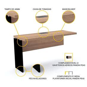 Elaborar a planta de um escritório unindo funcionalidade, beleza e bom gosto pode ser difícil. Porém, com móveis práticos e de boa qualidade, o desafio se transforma em uma tarefa fácil. Ao desenhar o projeto das mesas de seu ambiente corporativo, considere esta mesa modulável complementar da linha PE40 da Pandin, uma peça chave para expandir sua plataforma de trabalho, servindo como módulo para ser integrado a uma mesa plataforma inicial ou a outra mesa complementar. Com tampo na cor madeira natural e pé tipo painel na cor preta, ela ainda conta com caixa Power Box para facilitar a instalação de aparelhos eletrônicos ou telefônicos, tornando cada estação de trabalho independente e conectada, considerando diversos tipos de função na sua empresa. Esta mesa é uma peça com a qualidade da linha PE40 da marca Pandin, conhecida por seus móveis de escritório de design clássico e sofisticado que unem beleza, funcionalidade e estilo ao melhor custo-benefício do mercado.