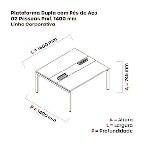 A Mesa Plataforma dupla para Coworking 160x140 é uma ótima opção para quem busca um ambiente de trabalho moderno, funcional e confortável. Essa mesa possui uma estrutura de aço resistente e elegante, com espaço para a instalação de tomadas e conectores. Além disso, é permitindo adequar com mais plataformas para criar uma interação dinâmica e colaborativa, transfonando seu espaço de trabalho produtivo, criativo e agradável.