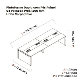A Mesa Plataforma Para Coworking para 4 pessoas é uma ótima opção para quem busca um ambiente de trabalho moderno, funcional e confortável. Essa mesa possui uma estrutura de aço resistente e elegante, com espaço para a instalação de tomadas e conectores. Além disso, é permitindo adequar com mais plataformas para criar uma interação dinâmica e colaborativa, transfonando seu espaço de trabalho produtivo, criativo e agradável. Produto Montado: Sim Acabamento dos Pés: Polipropileno Acompanha Manual de Instalação: Sim Ambiente Principal: Escritório codigo_ean: 7909903584897 Complexidade da Montagem: Alta: deve ser montado por um montador especializado Cor: Noce Naturalle/Branco Cor do Produto: Noce Naturalle/Branco Cor Interna: Noce Naturalle/Branco Escala de Brilho: Semi-Fosco Espessura do Tampo: 25 mm Itens Inclusos: 1 Mesa plataforma para 4 lugares Linha ou Coleção: Linha Corporativa Manual de Montagem e Instalação: https://product-hub-prd.madeiramadeira.com.br/893692/documents/998b3b6b-c92b-4661-890f-ff63eb4447ae20Dupla200420PC3A920Painel.pdf Material dos Pés: Polipropileno Material Principal: MDP Necessita Montagem: Sim Origem do Produto: Nacional Pés com Regulagem de Altura: Sim Pés Reguláveis: Sim Peso: 91,309 kg Recomendações de Uso, Manutenção e Limpeza: Utilize pano úmido com para limpeza Sapatas Niveladoras: Sim Sistema de Montagem: Pasrafuso