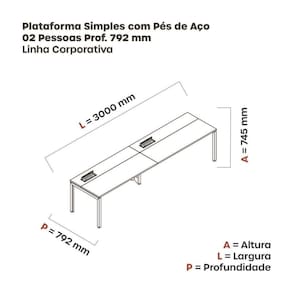 A Mesa Plataforma Para Coworking 140x792 Psc140 para 2 pessoas é uma ótima opção para quem busca um ambiente de trabalho moderno, funcional e confortável. Essa mesa possui uma estrutura de aço resistente e elegante, com espaço para a instalação de tomadas e conectores. Além disso, é permitindo adequar com mais plataformas para criar uma interação dinâmica e colaborativa, transfonando seu espaço de trabalho produtivo, criativo e agradável. Produto Montado: Sim Acompanha Manual de Instalação: Sim Ambiente Principal: Escritório codigo_ean: 7909903510834 Complexidade da Montagem: Baixa: pode ser montado por uma pessoa sozinha Cor: Cinza/Grafito Cor do Produto: Cinza/Grafito Cor Flex: Não Cor Interna: Cinza/Grafito Dobrável: Não Escala de Brilho: Semi-Fosco Espessura do Tampo: 25 mm Formato: Retangular Itens Inclusos: 1 Mesa plataforma Linha ou Coleção: Linha Corporativa Manual de Montagem e Instalação: https://product-hub-prd.madeiramadeira.com.br/883156/documents/83ebdfab-199b-4a01-a112-3947f22f4095ples200220Pessoas20Tubular.pdf Material da Estrutura: Aço Material do Tampo: MDP Material dos Pés: Polipropileno Material Principal: MDP Montagem Flex: Não Necessita Montagem: Sim Origem do Produto: Nacional Peso: 61,456 kg Possui Painel: Não Possui Passa Cabos: Não Possui Porta Objetos: Não Possui Portas: Não Possui Prateleiras: Não Possui suporte para CPU: Não Possui Suporte para Teclado: Não Possui Vidro: Não Recomendações de Uso, Manutenção e Limpeza: Utilize pano úmido com para limpeza Sapatas Niveladoras: Sim Sistema de Montagem: Parafuso Suporta Até (kg): 30 kg