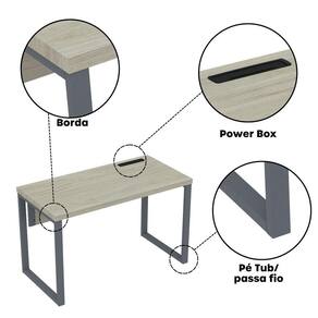 A mesa oferece amplo espaço para computadores, materiais de trabalho e reuniões rápidas. Seu design funcional permite integração com cadeiras e acessórios de escritório, promovendo um ambiente produtivo e organizado.