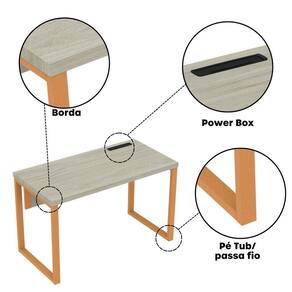 A mesa oferece amplo espaço para computadores, materiais de trabalho e reuniões rápidas. Seu design funcional permite integração com cadeiras e acessórios de escritório, promovendo um ambiente produtivo e organizado.