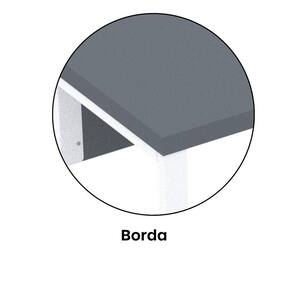 A mesa oferece amplo espaço para computadores, materiais de trabalho e reuniões rápidas. Seu design funcional permite integração com cadeiras e acessórios de escritório, promovendo um ambiente produtivo e organizado.