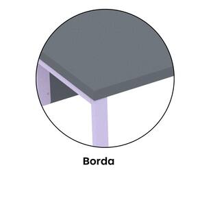 A mesa oferece amplo espaço para computadores, materiais de trabalho e reuniões rápidas. Seu design funcional permite integração com cadeiras e acessórios de escritório, promovendo um ambiente produtivo e organizado.