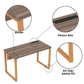 A mesa oferece amplo espaço para computadores, materiais de trabalho e reuniões rápidas. Seu design funcional permite integração com cadeiras e acessórios de escritório, promovendo um ambiente produtivo e organizado.
