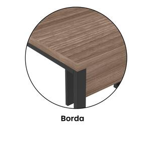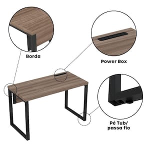 A mesa oferece amplo espaço para computadores, materiais de trabalho e reuniões rápidas. Seu design funcional permite integração com cadeiras e acessórios de escritório, promovendo um ambiente produtivo e organizado.