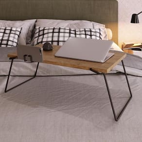 Esse complemento é a união entre o útil ao agradável, veja só! Ela possui tampo em MDP com suporte para e pernas metálicas dobráveis, ideal para você carregar para qualquer lugar! Uma opção excelente para facilitar o trabalho no aconchego do sofá ou aquele café da manhã caprichado na cama! E aí, não vai perder né?