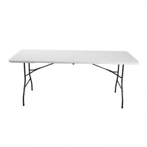 A mesa dobravel possui design portatil no estilo maleta, facilitando a montagem, desmontagem e transporte.