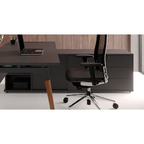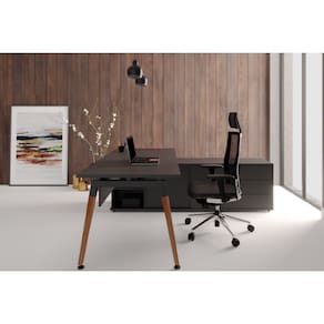 Mesa Dominus em L 2,00m Pé Cavalete Madeira com Armário Lateral 2,03m 03 gavetas 02 portas de correr cor - Preta