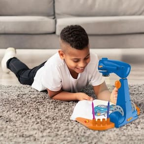 Equipada com 3 lanternas e 32 projeções diferentes, permite que os pequenos desenhem seus carros favoritos com facilidade. Além disso, acompanha um livro de desenhos e 12 canetas coloridas, tornando a brincadeira ainda mais completa. Seu projetor é ajustável, os pés são removíveis e o design arredondado garante maior segurança para as crianças.