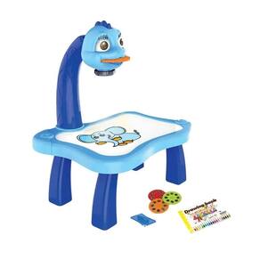 Mesa projetora mágica de imagens azul kids mesa com projetor de imagens infantil com som luzes e canetinhas. Uma linda mesinha projetora que vai estimular seu pequeno a se interessar em passar horas desenhando e praticando sua coordenação motora e intelectual. Além de ser linda e divertida, pode desenhar escutando musiquinha ou não, desenhar direto na mesa e apagar com o apagador umedecido ou no caderninho de pintura. Seu princepe que decide que tal estimular seu garotão desde já