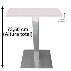 Mesa Quadrada Alpha Inox Prata 73,50 Cm (altura) Tampo Mdp Quadrado 60 Cm Branco (larg) Quando o assunto é refeição, sempre gostamos de estar acompanhado por alguém que gostamos, não é mesmo?! E para isso precisamos de uma mesa de jantar, que possa nos ajudar a deixar o momento mais confortável. Com design e tonalidade básicos, ela acompanha a rotina da sua cozinha sem roubar o protagonismo dos armários e balcões, ao mesmo tempo em que deixar o cômodo mais prático para o café, almoço ou jantar. Produto: Mesa Quadrada Alpha Inox Prata 73,50 cm (Altura) Tampo MDP Quadrado 60 cm Branco (Larg) | Garantia (via): 6 | Cor: Branco | Materiais: MDP, Aço Inox | Estilo de Decoração: Urbano Contemporâneo | Tonalidade: Branco | Linha: PE25 | Cômodo Indicado: Salas | DepthHeightFloorToTop: CENTIMETERS | Marca: Pandin | Lugares: 02 | Montagem: Desmontado | Tipo de Base: Central | DepthFrontToBack: 60 CENTIMETERS | Atributos: Versátil, Arrojado, Sofisticado | Área de Uso: Interna | Garantia (tempo): 6 meses | Garantia (descritivo): Garantia contra de fabricação de 06 meses. Consulte as nossas políticas. | Peso (kg): | Medidas: Largura (cm): | Medidas: Profundidade (cm): | Medidas: Altura (cm): | Entregue Montado?: Não | Possui Manual de Montagem?: Acompanha o Produto | Origem do Produto: | Conservação e Manutenção: Uso interno. Não expor ao sol ou umidade. Não exceder a capacidade de peso. Limpar com pano macio umedecido em solução de água e sabão neutro e secar em seguida. Não utilizar produtos químicos ou abrasivos. | Acabamento: Aço cromado | Estado de Origem: Sp | Conteúdo da Embalagem: 1 Mesa de jantar | Height: 73 CENTIMETERS | Width: 60 CENTIMETERS | SideToSide: 60 CENTIMETERS Marca: Não Informado