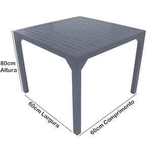Características: Modelo: Haiti Material: Alumínio Tampo: Ripado em Alumínio Acabamento: Pintura Eletrostática Formato: Quadrada Indicado para varandas, edículas, área de lazer, salas de estar, sala de jogos, churrasqueiras, recepção, sala de espera e outros ambientes.