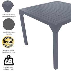 Itens Inclusos: 01 Mesa Haiti Quadrada com Tampo Ripado em Alumínio