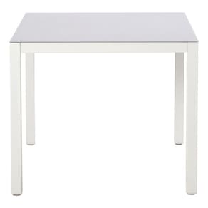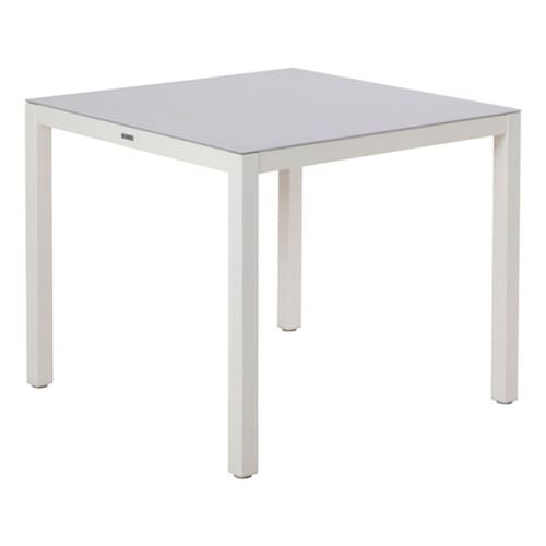 Resumo das caracteristicas: - Mesa de Jardim Quadrada, capacidade para 4 lugares. - Dimensoes: Altura 75cm, Largura 90cm, Comprimento 90cm. - Tampo da Mesa: Vidro. - Estrutura da Mesa: Metal (Aluminio). - Nao e dobravel, extensivel ou empilhavel. - Nao possui furo para ombrelone ou centro giratorio. - Produto vem desmontado. - Parte da colecao Lyra. - Cor: Branco. Marca: Não Informado Ean: 3276007268058