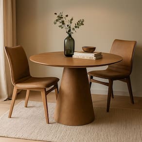 A Mesa Mira cria um ambiente acolhedor e é ideal para ambientes menores. Seu tampo laminado em madeira de jequitibá com espessura de 2,5cm é de alta qualidade. Já a base cônica com estrutura de madeira é revestida em tecido. Acabamento: PU Acabamento do Tampo: PU Ambiente Principal: Sala de Jantar Atóxico: Não codigo_ean: 7900288270597 Complexidade da Montagem: Média: pode ser montado por mais de uma pessoa e/ou necessite de maior conhecimento para montagem Cor: Nogueira Cor do Produto: Nogueira Design da Base: Cilindro Dobrável: Não Escala de Brilho: Fosco Espessura do Tampo: 25 mm Extensível: Não Itens Inclusos: 1 Mesa, Kit Ferragens e Manual de Montagem Linha ou Coleção: Mira Manual de Montagem e Instalação: https://product-hub-prd.madeiramadeira.com.br/980373642/documents/f787d208-533a-4552-8538-dd90e60503583285381522517610742579078.pdf Marca: Volttoni Material da Base: MDF Material do Tampo: Laminado Material Principal: MDF Medida da Mesa (A x L x P): 76x136x136 Medida do Tampo (L x C x E): 136x136x2,5 Necessita Montagem: Sim Origem do Produto: Nacional Peso: 20 kg Possui Portas: Não Possui prateleira: Não Possui Rodízio: Não Possui Suporte Giratório: Não Possui Vidro: Não Recomendações de Uso, Manutenção e Limpeza: Limpar com Pano Seco Sistema de Montagem: PARAFUSOS E CAVILHAS NA MESA Suporta Até (kg): 100 kg