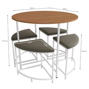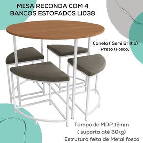 A Mesa Industrial conta com um design moderno que se adapta a diversos ambientes. A mesa possui estrutura metálica fosca, tampo redondo feito em MDP de 15mm e acabamento touch que simula os veios naturais da madeira. Os bancos, com 48 cm de altura e formato triangular, também são feitos em estrutura metálica e contam com assento estofado em tecido suede. Um dos grandes destaques é o design inteligente: os bancos se encaixam perfeitamente a mesa, formando um visual que lembra uma pizza! Solução ideal para otimizar espaço com muito estilo. Para completar, tanto a mesa quanto os bancos possuem pés reguláveis, que se ajustam a diferentes tipos de piso. Este móvel chegará em sua casa separado em 02 volumes.
