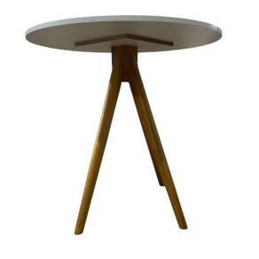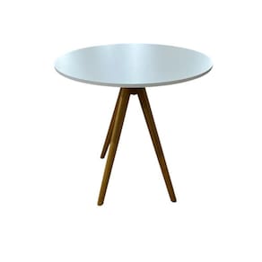Com tampo branco de acabamento suave e pés de madeira robustos, ela combina perfeitamente elegância e durabilidade. Seu formato redondo cria uma atmosfera mais íntima, ideal para reuniões familiares, jantares a dois ou encontros com amigos.