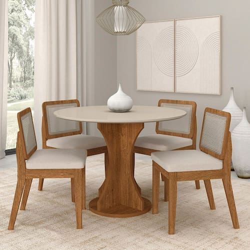 Detalhes Técnicos da Mesa -Acabamento:Pintura UV Texturizada -Material da Base:MDF -Material do Tampo:MDF -Medida da Mesa Montada:A:80CMxL:100CMxP:100CM -Tonalidade da Mesa:Freijó/Off Premium -NÃO POSSUÍ VIDRO