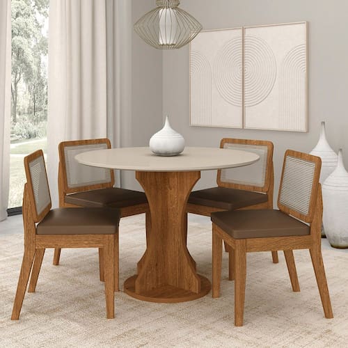 Detalhes Técnicos das Cadeiras -Assento Tapeçados, Estofados e Fixos -Encosto Tela Sintética -Peso Suportado da Cadeira:90KG -Facilidade da Montagem:Média -Tonalidade da Cadeira:Freijó/Corino Caramelo -Espuma do Assento:D16 -Tipo de Pintura:UV Texturizada -Material da Estrutura:MDF 25/18mm -Medida da Cadeira:A:84CMxL:45CMxP:53CM