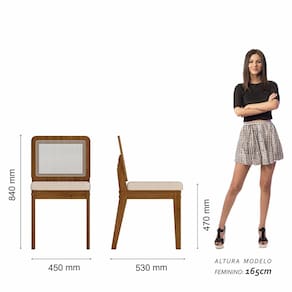 Detalhes Técnicos das Cadeiras -Assento Tapeçados, Estofados e Fixos -Encosto Tela Sintética -Peso Suportado da Cadeira:90KG -Facilidade da Montagem:Média -Tonalidade da Cadeira:Freijó/Bouclé Off White -Espuma do Assento:D16 -Tipo de Pintura:UV Texturizada -Material da Estrutura:MDF 25/18mm -Medida da Cadeira:A:84CMxL:45CMxP:53CM