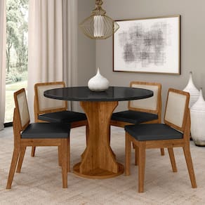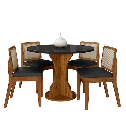 A Mesa Redonda Cali com 4 Cadeiras Sydney Sextavadas, trás Elegância e Conforto para sua Sala de Jantar as cadeiras são confortáveis para longas conversas e bons momentos em família.