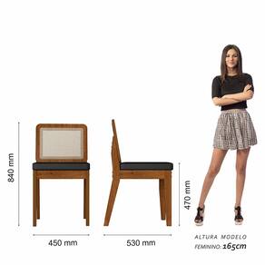 Detalhes Técnicos das Cadeiras - Assento Tapeçado, Estofado e Fixo - Encosto com Tela Sextavada - Palha Sintética - Estrutura: MDF - Tonalidade: Freijó/Corino Preto - Medida: A:84CM x L:45CM x P:53CM - Do chão até o assento possui 47cm - Suporta até 90kg (cada)