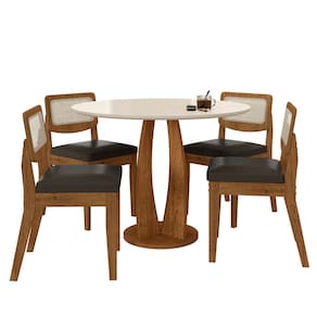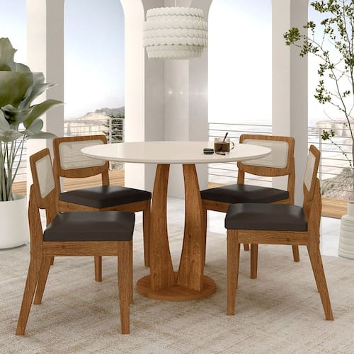 Mesa Redonda Camogli 4 Cadeiras Sextavadas Freijó/off/corin Marr - M.a - Marrom