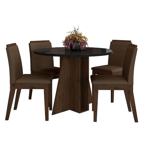 A Mesa Sala de Jantar Redonda com Vidro Bélgica e 4 Cadeiras Cairo design moderno remetendo elegância e praticidade. Perfeita para reunir a família em momentos especiais!