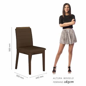 Detalhes Técnicos das Cadeiras -Assento e Encosto Tapeçados, Estofados e Fixos -Pintura UV Texturizada e P.U -Estrutura: MDF 18mm e 25mm -Tonalidade: Imbuia/Suede Marrom -Assento: D16 -Encosto: D14 -Suporta até 90kg (cada) -Medida de cada Cadeira: A:95cm | L:44cm | P:50cm