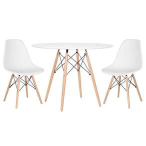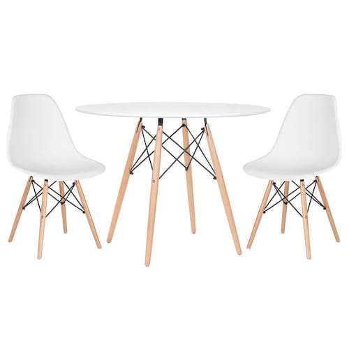 Mesa redonda Eames 100 cm + 2 cadeiras Eiffel DSW - Branco